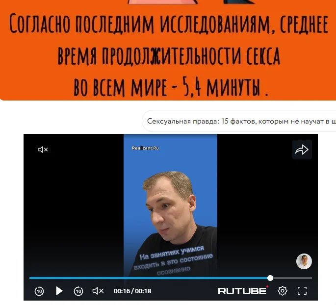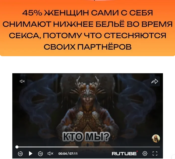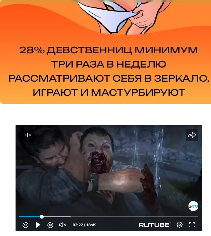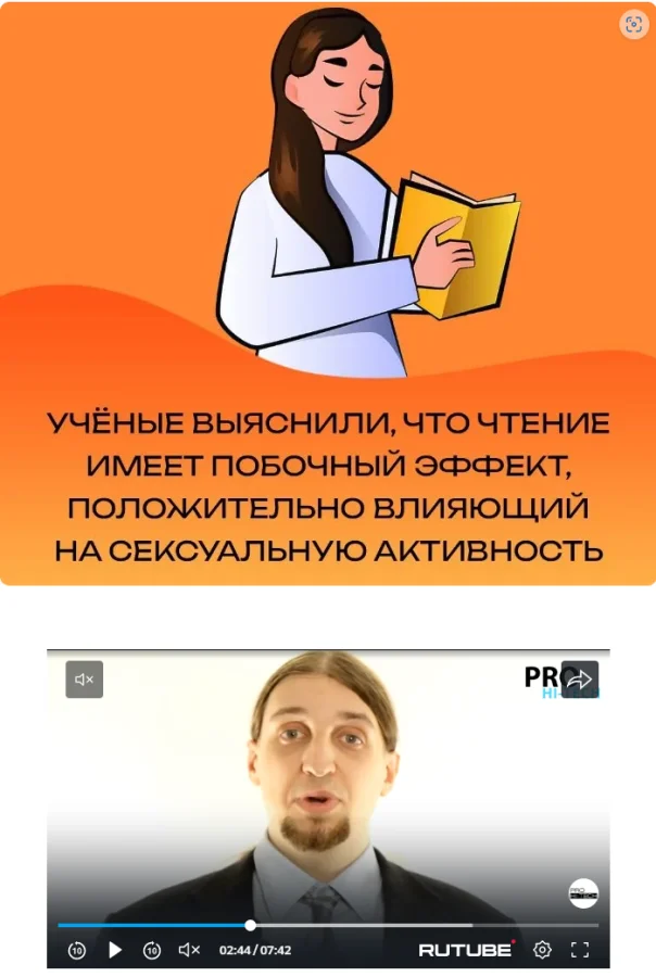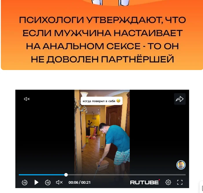 При просмотре постов идет реклама в роликах с RUTUBE, в которых периодически появляются моменты, забавно иллюстрирующие информацию в постах от Crazy и NikoniX.