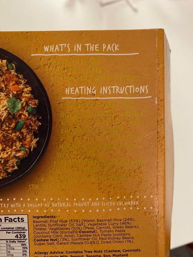 Пытался правильно разогреть блюдо, но не смог различить жёлтый текст на коричневом фоне