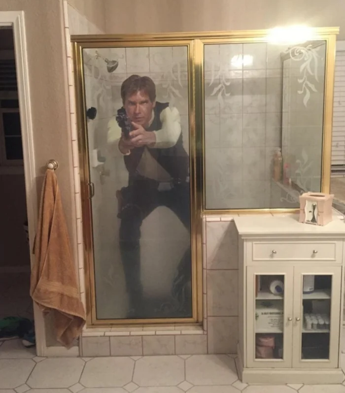 14. Шесть лет назад муж настоял на покупке картонной фигуры Хана Соло, а теперь его жена использует ее, чтобы пугать его.