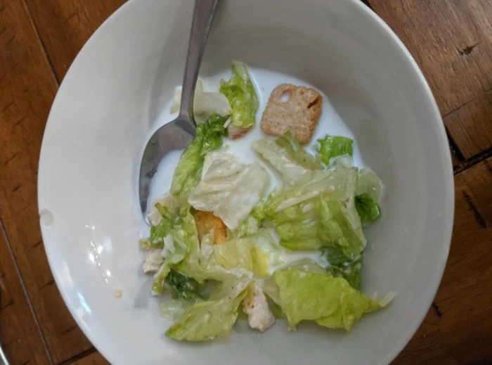 Молоко, курица и листья салата. Угадаете рецепт? Это оказывается салат «Цезарь» от 3-летнего будущего шеф-повара.