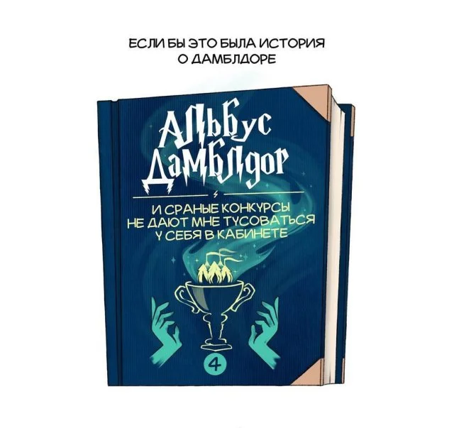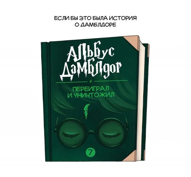 Альбус Персиваль Вульфрик Брайан Дамблдор является одним из ключевых персонажей в серии книг о Гарри Поттере. Он занимает должность директора школы волшебства и чародейства «Хогвартс», и, как правило, воспринимается как положительный персонаж. Тем не менее, многие поклонники считают его весьма неоднозначной фигурой, и некоторые даже именуют его злодеем. Художники, создающие эти иллюстрации, придерживаются именно такой точки зрения. Они решили представить, как могли бы называться книги о «Гарри Поттере», если бы события развивались с точки зрения Дамблдора.