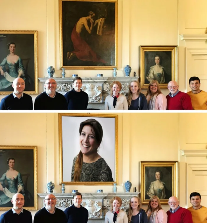 4. Женщина попросила добавить себя на семейное фото. Видимо, это семья с юмором.