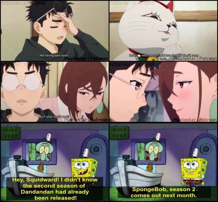 - Эй, Сквидвард, я и не знал, что 2 сезон Дандадана уже вышел