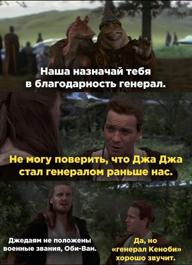 Франшиза "Звездные войны" представляет собой уникальное сочетание жанров, включая драму, фантастику, фэнтези, триллер и приключения, что делает её невероятно богатой и разнообразной. Этот мир не только увлекает зрителей захватывающими сюжетами, но и породил множество мемов, которые стали частью поп-культуры за последние десятилетия.