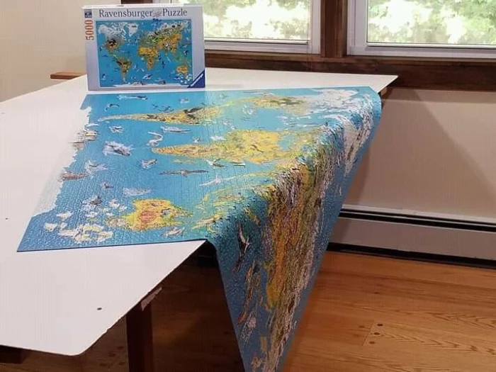 16. «Дядя закончил паззл из 5000 деталей и хотел сфоткать, но кот добрался до него первым»
