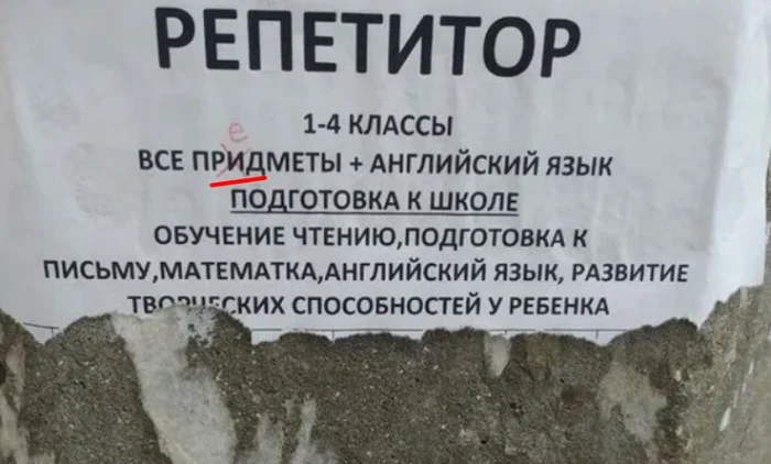 Многие объявления содержат грамматические ошибки, вызванные недостаточным знанием русского языка авторами. Это может быть связано как с неродным владением языком, так и с банальными ошибками соотечественников, что часто выглядит забавно.
