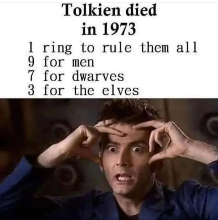 13. Толкин умер в 1973 году. 1 кольцо, чтобы править всеми, 9 колец - людям, 7 - гномам, 3 - эльфам. 1973! Как вам такое совпадение?