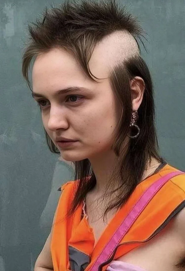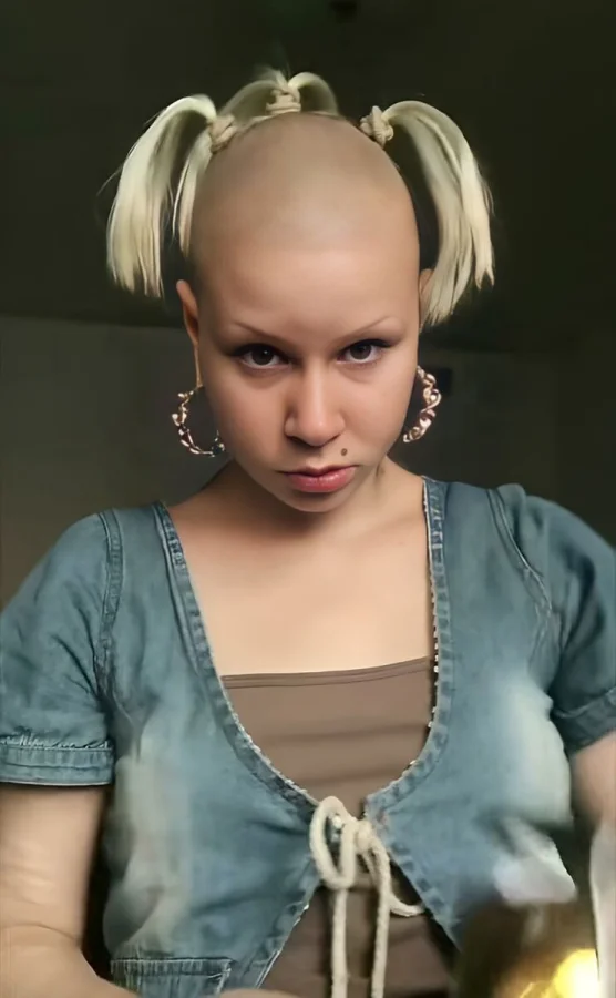 В этой прическе замечательно все. И сама задумка сделать три хвостика, и бритая голова, и общий внешний вид волос. Посмотрите на это и никогда не повторяйте в домашних условиях.