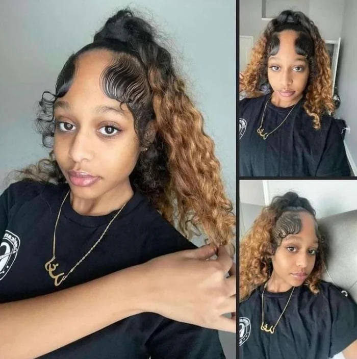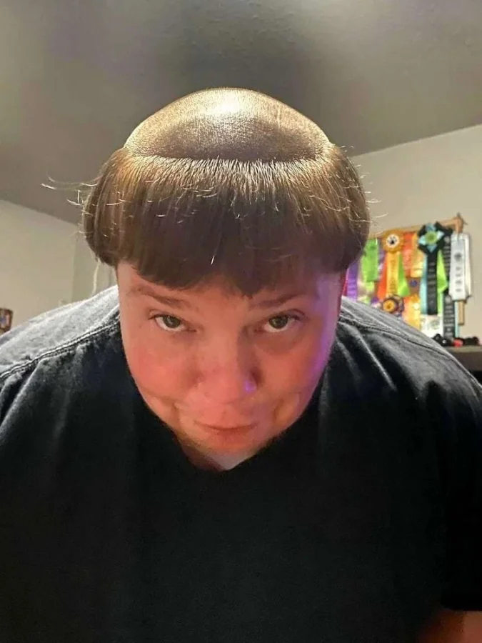 Странное творение, но судя по фото девушка не просто довольна, а даже гордится своей прической. Ну и пусть она напоминает лысину мужчины с фото выше. Зато креативно!