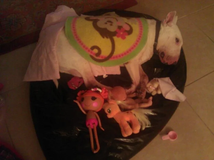 Игрушечный пёс получает угощение, а настоящий – лишь взгляд