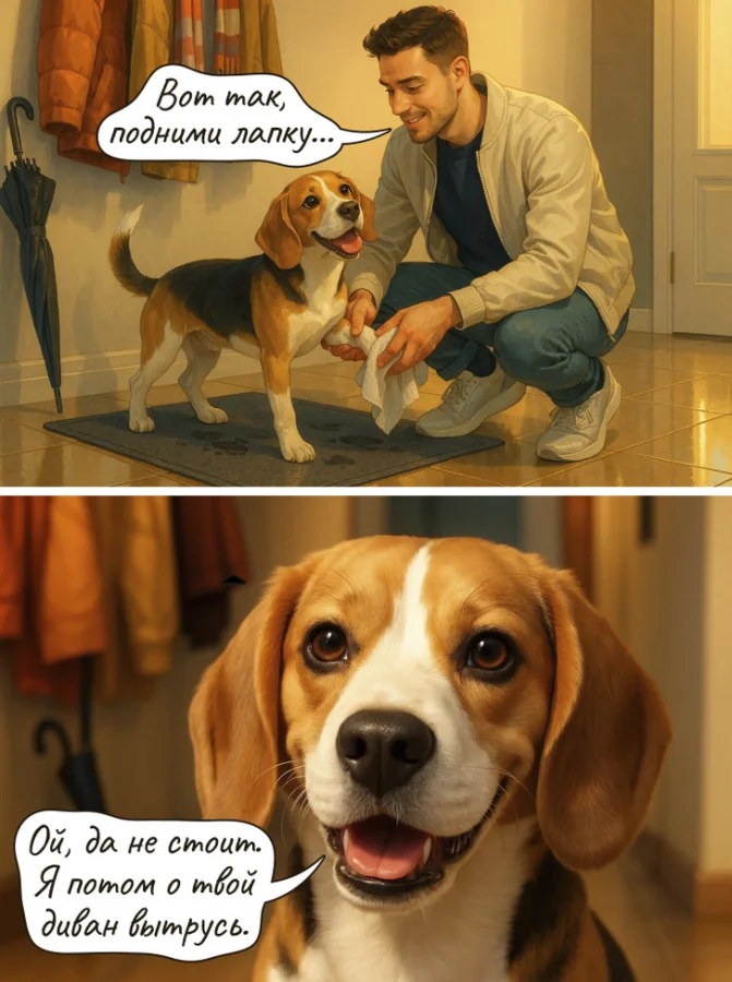 Все мы воспринимаем наших питомцев как полноценных членов семьи. Но задумывались ли вы когда-нибудь, насколько по-разному выглядит один и тот же день в глазах хозяина и его четвероногого друга? Обычная прогулка в парке, визит к ветеринару или даже момент, когда вы достаете корм, — на все эти рутинные моменты в нашей общей реальности всегда найдется две точки зрения. Именно этот забавный контраст восприятия и лег в основу нашей подборки комиксов.