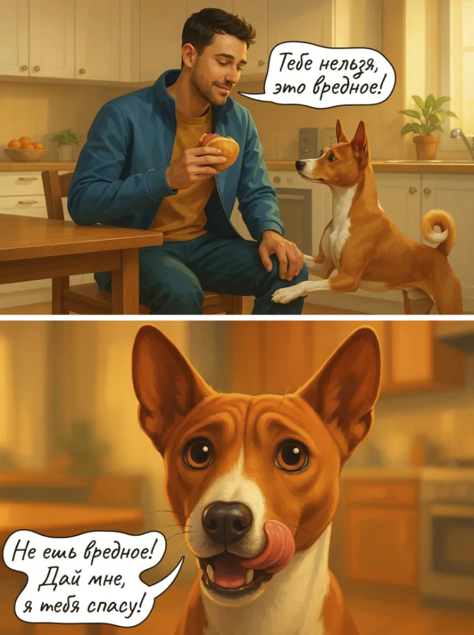 В их картине мира разделение еды на «вредную» и «полезную» — это просто наша отговорка, чтобы лишить их вкусненького