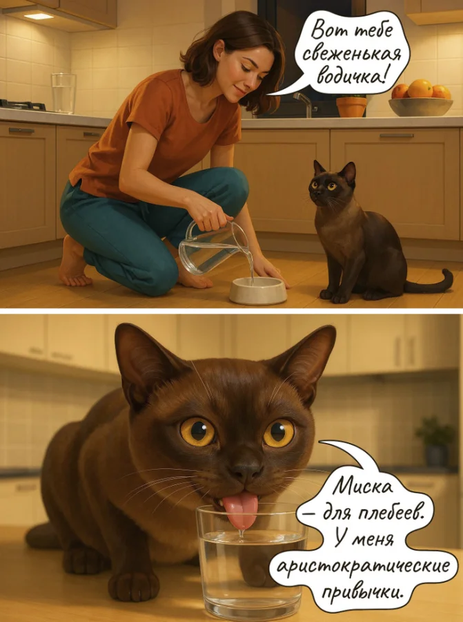 Это для нас у воды один и тот же вкус, что в миске, что в стакане, а для них — разница очевидна