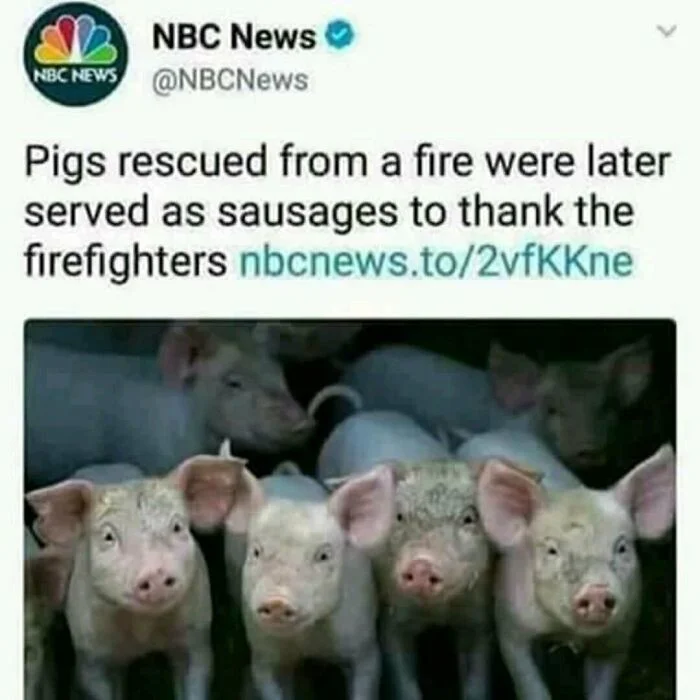 21. Пожарных угостили сосисками из поросят, которых они спасли из огня