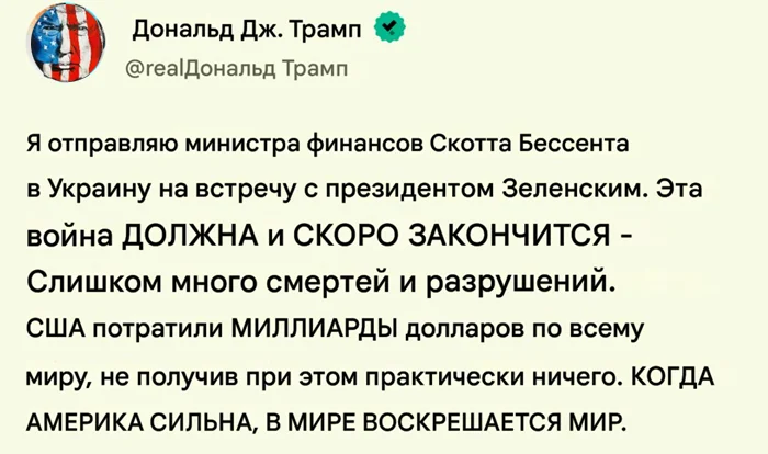 Правда, оказалось, что это будет Министр финансов США, который явно прибудет не для обсуждения вопросов мира, а скорее для разговора о финансах.