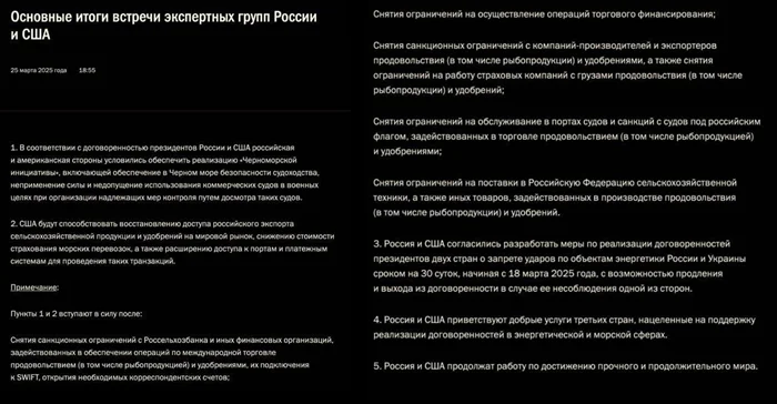 Договоренности включали два важных пункта: открытие украинских портов и частичное снятие санкций с России. Как многие помнят, второй пункт так и не был выполнен.