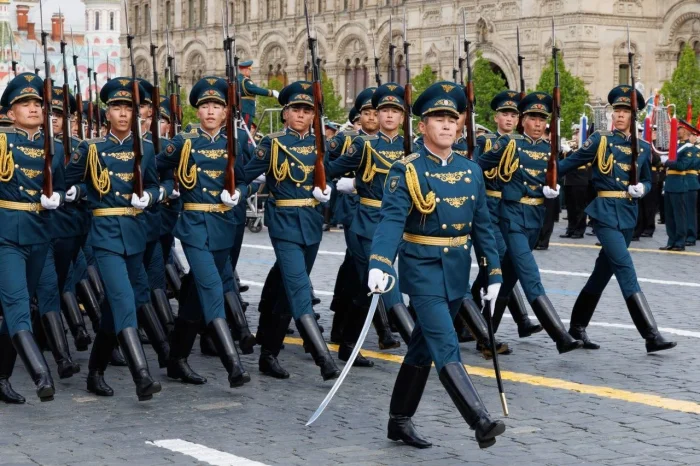 >В параде также участвовали курсанты Вьетнамской армии, солдаты из Египта, почётный караул из Китая, почётный парад из Лаоса, военнослужащие Монголии и почётный парад из Мьянмы.