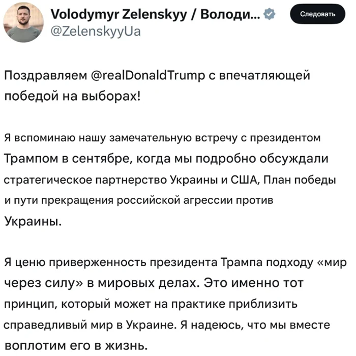 Но Зеленский категорически против территориальных уступок, поэтому предложенный Трампом план ему не подходит... Однако, он поспешил поздравить Дональда с победой.