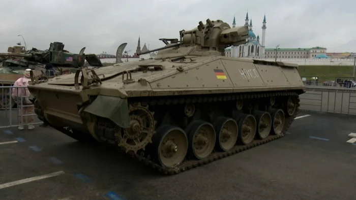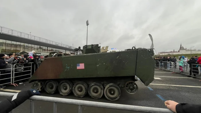 В Казани у Центрального стадиона открылась мобильная выставка «Сила V правде – гордость и победа», где представлены трофейные образцы военной техники НАТО, захваченной и уничтоженной в ходе специальной военной операции. На выставке можно увидеть танки, бронетранспортеры и бронеавтомобили, которые ранее передавались Украине странами НАТО. Экспозиция расположена на парковке у стадиона и будет работать до 19 ноября с 10:00 до 16:00.