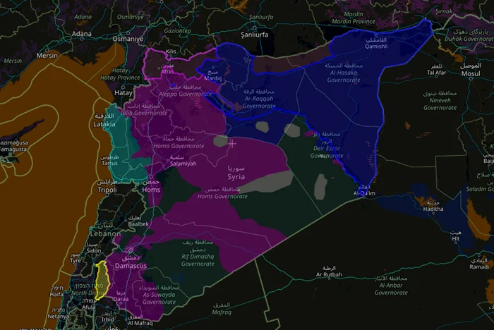 3. Курды (SDF) — союзники США, которые, хотя и заняли несколько сирийских городов, предпочитают избегать открытых столкновений. Они стремятся к созданию собственного государства и крайне враждебно настроены против Турции. Их обозначают жёлтым цветом.