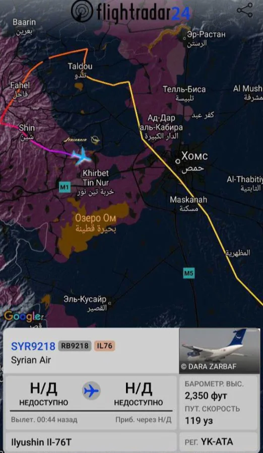 На Flightradar виден вылетевший из Дамаска самолёт, который, предположительно, упал: