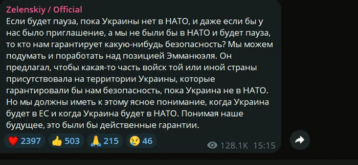 Получается парадокс: Зеленский требует вступления в НАТО для достижения мира, хотя именно это и стало триггером конфликта.