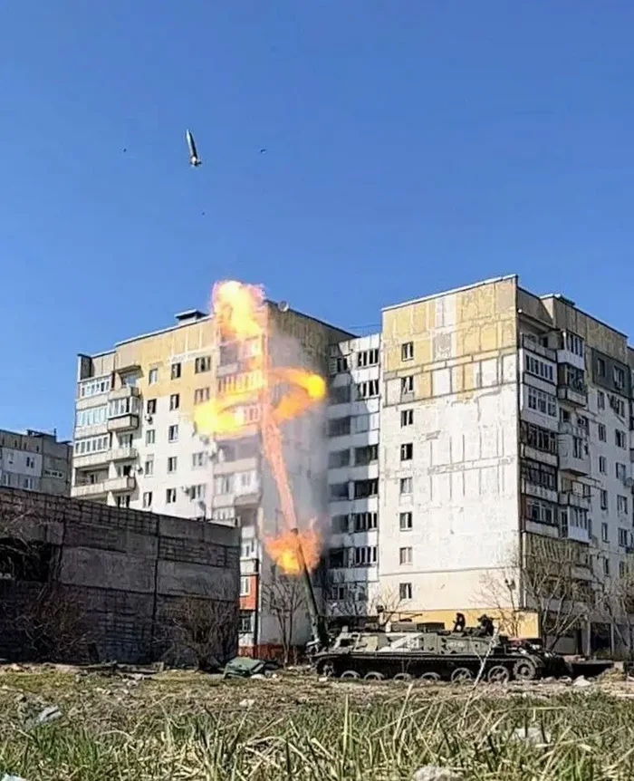 Миномёт 2С4 выполняет стрельбу миной 3Ф5, май 2022 г., Мариуполь. Фото Telegram / BMPD