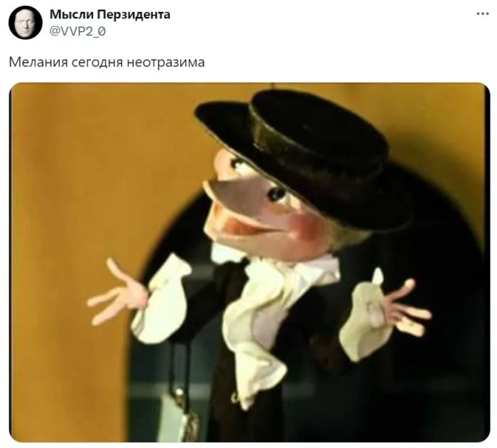 Нашим людям образ первой леди напомнил старуху Шапокляк. Кстати, шапокляк, в честь которого получила имя вредная старушка из сказки, — это мужской головной убор.