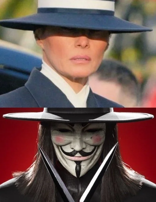 Пользователи представили, как Мелания из-под шляпы смотрела церемонию.