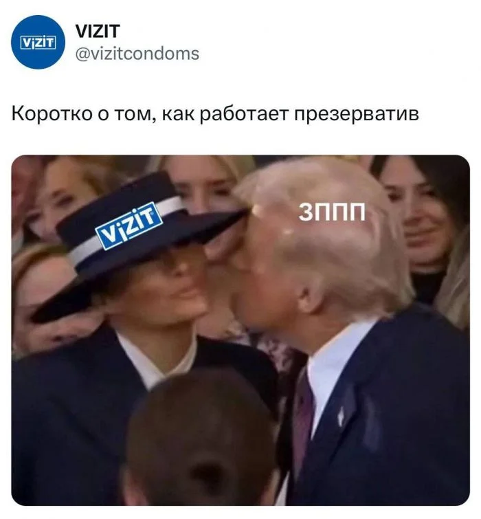Есть версия, что Мелания на самом деле ненавидит Трампа и всячески избегает любого контакта с ним. Так что шляпу такую выбрала, чтобы не целоваться с Трампом.