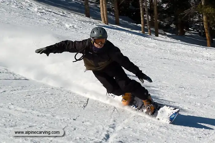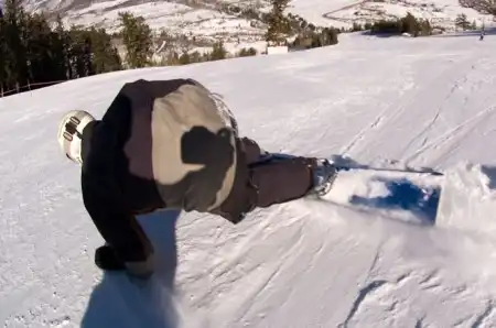 На картинках мы видим карвинг - это прохождение поворотов по четкой дуге. Мы режем эту дугу кантом борда. Правда для такого вот карвинга надо жесткую, достатончо дорогую доску, и ботинки почти как у горнолыжников - жесткие пластиковые.