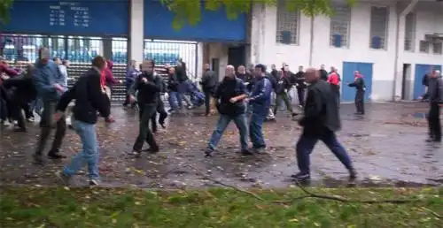 Российские "околофутбольники" не хотят, чтобы против них приняли специальные - аналогичные британским - законы, нарушители которых быстро бы оказались в тюрьмах. Драки с милицией на российских стадионах последние годы не случаются…Но в 1990 годы было жарко…