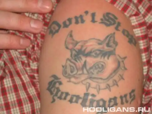 К сведенью: И скинхеды и фанаты могут называть себя хулиганами. А воть идеалогия да и тату совсем у них разные.