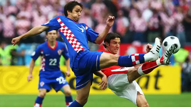 Хорваты же действовали очень широко, используя все возможности для атак, будь то проходы по флангам, через центр, или навесные передачи в штрафную площадь. Очень старался Олич, старавшийся проникнуть во все щели обороны соперника, чтобы подставить после передачи партнёров, то голову, то ногу или другие части тела. Оборонцы сборной Австрии действовали против игрока немецкого "Гамбурга" довольно грубо. В одном из моментов защитник хозяев Погатец нанёс хорвату удар по лицу, после чего мог получить вторую желтую карточку и выгнан с поля, но голландский судья пожалел подопечных Хикерсбергера, которые и так получили пенальти в свои ворота, а тут бы ещё остались в меньшинстве.