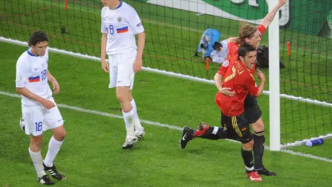 Голы: Вилья, 20 – 1:0; Вилья, 45 – 2:0; Вилья, 73 – 3:0; Павлюченко, 86 - 3:1; Фабрегас, 90 - 4:1.