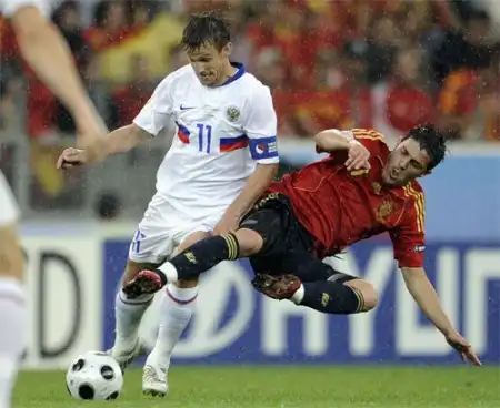 И россияне искали. Искали в меру своих способностей. Ко второй минуте поединка в активе нашей сборной было два рейда Юрий Жиркова по флангу (в ходе одного из них полузащитник ЦСКА заработал право на штрафной) и один сильный заброс в направление Павлюченко. Запомнился момент, когда Павлюченко сделал передачу на ход Жиркову, которому не позволил сыграть Карлес Пуйоль. Кстати, защитник "Барселоны" в этом матче дал достойный ответ критикам, сыграв довольно надёжно. И это после по сути проваленного сезона.
