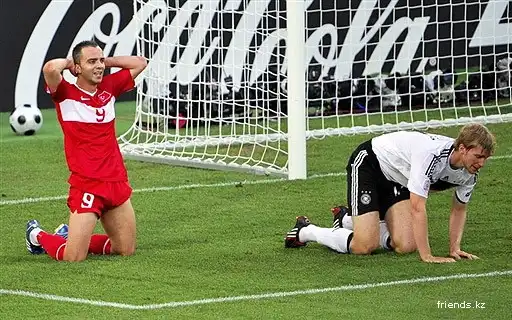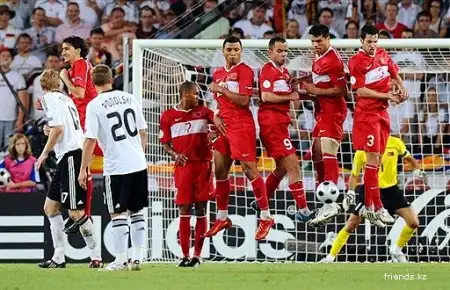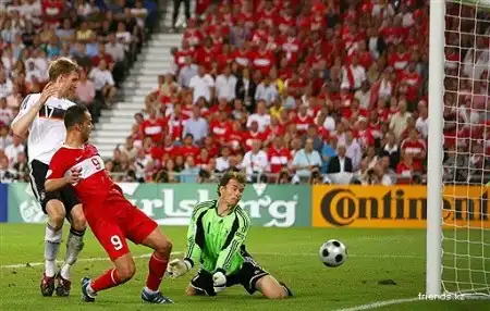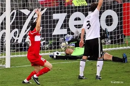 Немцы отыгрались уже через четыре минуты. Лукаш Подольски совершил проход по левому флангу, выполнил передачу в штафную, и Бастиан Швайнштайгер ударом в касание перевел мяч в правый угол ворот голкипера сборной Турции Рюшту Реджбера.