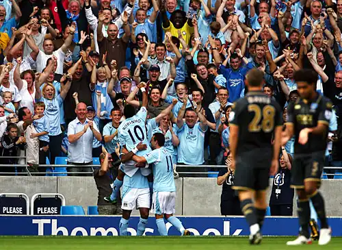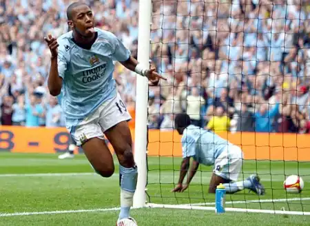 Нападающий "Манчестер Сити" Робиньо забивает второй гол в двух матчах.