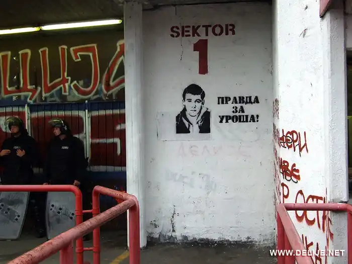 Почти год назад в перерыве матча Црвены Звезды (Белград) с Хайдуком из Кула, полицейский агент в штатском снимал на камеру болельщиков Црвены Звезды, находясь на северной трибуне. Болельщики отняли видеокамеру, после чего полицейский достал пистолет и начал стрелять во все стороны - лишь чудом никто не пострадал. После этого на фанатов, защищавших свою жизнь, обрушивается специальный отряд полиции, схвативший 3-их из них и сделав своё дело, убежавший с позором.