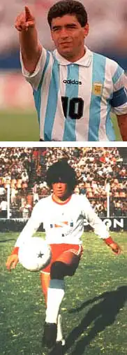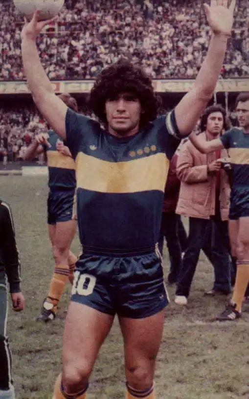 В том районе, в пригороде Буэнос-Айреса где жила семья Марадоны, все мальчишки увлекались футболом. Диего одно время дружил с Гойо Каррисо, который был старше его на два года и слыл своим человеком в футбольном клубе "Архентинос Хуниорс". Однажды Гойо зашел в дом Марадоны и увидел повешенные на стене над кроватью, на которой спал Диего, портреты Бочини, Беккенбауэра и Пеле. "Это твои кумиры, малыш?"- спросил он у Марадоны. Диего смущенно кивнул. "А почему здесь нет ди Стефано, Фонтена, Копы?" Марадона впервые слышал эти имена. Гойо начал рассказывать ему о великих футболистах, приведя в восторг своего молодого друга. На следующий день Диего уже имел цветной портрет ди Стефано, который прикрепил рядом с фото Беккенбауэра. Через некоторое время Диего был принят в детскую футбольную команду “Лос Себольитас”, на русском языке, эту команду называют “Маленькие Луковички” и благодаря именно Диего, команда становится юношеской секцией клуба “Аргентинос Хуниорс”. Диего взрослел вместе со своей командой. "На поле мы напоминали машину, - вспоминал позднее Марадона,- обыгрывали всех, даже со счетом 20:0. Мы мечтали сыграть против знаменитых юниоров из "Ривер-Плейта", которые были чемпионами Аргентины. Наконец этот матч состоялся. Мы выиграли его со счетом 7:1, и мне удался потрясающий гол, а всего я их тогда забил пять. Надо было видеть, как противник злился и гонялся за мной по всему полю". Болельщики, которые видели этот матч, восторженно повторяли “Фантастика, фантастика!”С тех самых пор о Марадоне говорили как о самой большой надежде аргентинского футбола,- ему было всего десять лет. Сам Диего Армандо Марадона своим дебютом считает 20 октября 1976 года, ему тогда было всего 15, когда он вышел на поле сыграть во втором тайме за взрослую команду "Архентинос Хуниорс", выступавшую тогда в первом дивизионе чемпионата Аргентины. А в 1976 году уже играл за сборную Аргентины, но показать свой талант на Чемпионате Мира 1978 года Диего не смог. Тогдашний тренер сборной Аргентины Сезара Менотти не принял Марадону в сборную Аргентины.