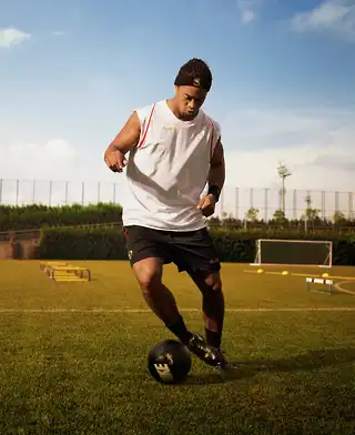 Описать словами то, что делает на поле лидер "Барсы", просто невозможно. Кошачья пластика, великолепная техника, умение обыграть соперника на скорости или на "носовом платке", фантастическая способность "читать" игру... Все это Роналдиньо, заставляющий восторгаться им даже соперников каталонцев. "Финты у меня выходят сами собой, — говорит футболист. — Я люблю возиться с мячом, а все эти фокусы рождаются спонтанно. Люблю проделывать "резинку", как называют этот финт в Бразилии, когда вы за долю секунды гладите мяч сначала внешней стороной стопы, а затем подъемом. Это не мое изобретение. В первый раз я увидел такое в исполнении великого Ривелино, а впоследствии лишь немного усовершенствовал этот финт".