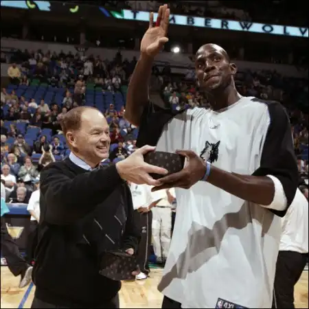 На протяжении всей карьеры Гарнетта называют "The Kid", то есть ребенок, мальчишка. Это прозвище привязалось к Кевину очень давно, и оно ему, в общем, всегда льстило. Однако сейчас как-то язык не поворачивается назвать такого человека, сделавшего так много за свою жизнь, мальчишкой. Гораздо более подходящее другое имя. Известный американский автор Скуп Джексон в журнале "Hoop Magazine" двухмесячной давности озвучил более точное прозвище: "The Man" - Мужчина. И с ним трудно не согласиться. Хотя в дебютный год в НБА Гарнетт был действительно мальчиком среди профессионалов. Стоит взглянуть на фото тех лет: перед нами улыбчивый, худосочный парень, только пришедший в большой баскетбол со школьной скамьи, кстати, в последний раз такое случалось в далеком 1975 году, и делающий первые шаги в НБА. Но, несмотря на свои 19 лет, обладающий уже большим жизненным опытом. Татуировка Кевина "Кровь, Пот и Слезы" - как отражение его характера и судьбы. Гарнетт, как и многие чернокожие спортсмены, все детство провел в бедности и безнадежности. Он вырос в Южной Каролине, в опасном квартале, мимо которого всякий более-менее обеспеченный американец побоялся бы пройти. Настоящего своего отца он не знал, так что приходилось мириться с каждым новым приемным. Приходилось и работать с тринадцати лет, то грузчиком, то мойщиком машин. Приходилось заботиться о семье. Однажды пришлось взять на себя опекунство своей младшей сестры, то есть, фактически, стать для нее отцом. И это еще до того, как он пошел на свое первое свидание. Он был вынужден быть ответственным. Будущее выглядело тогда безрадостно. Единственным выходом был баскетбол. Гарнетт оставил свой дом и переехал в Чикаго, чтобы окончить там школу. Он провел один год в "Farragut Academy" и благодаря своей игре стал знаменитым. Его назвали лучшим баскетболистом года среди школьников, и только одним возможным выбором для него оставалось начало профессиональной карьеры, минуя колледж, чтобы обеспечить себя и свою семью. На драфте 1995 года Кевин Гарнетт был выбран под пятым номером "Миннесотой". И хотя ему не удалось сразу стать звездой, как, например, ЛеБрону 8 лет спустя, Кевин оказался очень важным игроком для "Тимбервулвз" и побил клубный рекорд по блокшотам за сезон, накрыв броски соперников 131 раз (1,64 в среднем за игру). С этих пор, Гарнетт стал очень быстро прогрессировать и улучшать свои статистические показатели в каждом сезоне. Во второй год выступлений в НБА он уже был игроком стартовой пятерки своей команды, а в феврале попал на "Матч Всех Звезд". В межсезонье Кевин подписал с "Миннесотой" рекордный контракт в 121 (+5) миллион долларов, который, впоследствии, косвенно повлиял на объявление Ассоциацией локаута. Продолжая хорошую традицию отдуваться на площадке за всю команду, Гарнетт забивает, подбирает, отдает передачи, накрывает броски и перехватывает мячи в каждом матче вот уже девятый год подряд. За это время он семь раз поучаствовал в "Матчах Всех Звезд", в 2003 году став MVP встречи "Запада" и "Востока", шесть раз был включен в символическую сборную "All-NBA" и пять раз в пятерку лучших защитников. В 2000 году был олимпийским чемпионом в Сиднее. В этом году его баскетбольная биография пополнилась еще рядом разных достижений. В первую очередь, это, конечно, MVP регулярного сезона. Во-вторых, Гарнетт составил пару Лэрри Берду, как единственному игрок