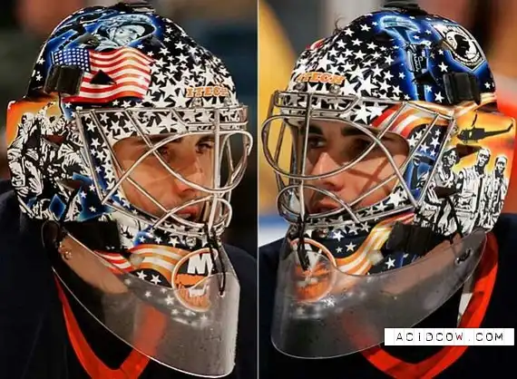 Ничего удивительного! Вон у Роберта Луонго (вратаря Шведской сборной) на шлеме статуя свободы!