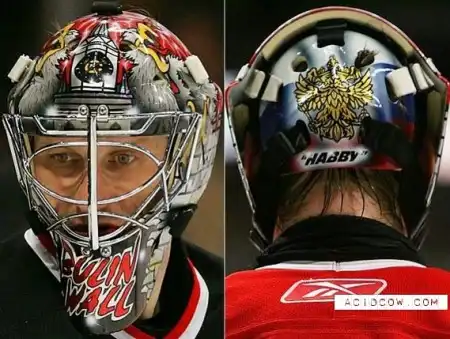Ух,моя любимя тема. Кстати,вратарь канадской сборной выступал на чемпионате мира с рисунком Петра1 и логотипом СКА,т.к. является ещё и вратарем питерской команды