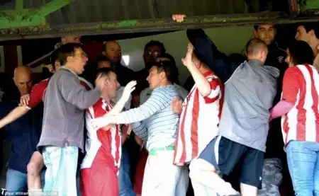 По пути с поля он ворвался на трибуну и ввязался в драку с болельщиком команды соперников.