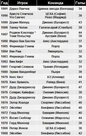 В 1987 году Родион Кэмэтару получил «Золотую бутсу», однако позже был лишён награды (он забил 18 голов в последних 6 матчах, и был доказан их договорной характер), обладателем приза 1987 считается Т. Польстер, Аустрия (Вена, Австрия), с результатом 39 голов.