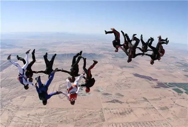 2. Купольная акробатика. Один из самых опасных видов. Часто спутавшиеся купола не позволяют отцепиться и ввести запаску. Рекорд мира - ромб из парашютов 100way.