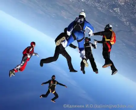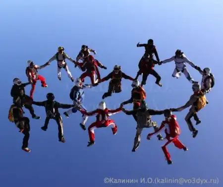 Фрифлай формации - сложный вид скайдайва, так как на терминальной скорости (300+ кмч) работает группа небоныров? стоя на голове.
