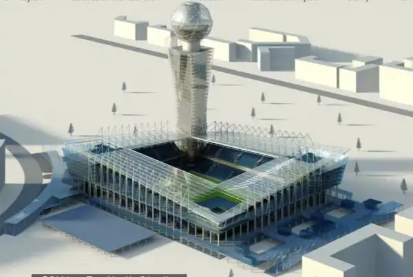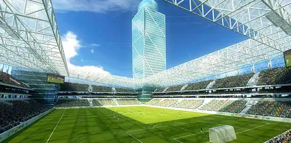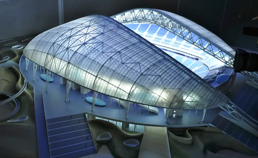 Подготовленные британской фирмой «Populous», эскизы, как выяснилось, на самый взыскательный вкус: стадион в виде холма с двумя разборными трибунами, с раздвижной крышей и трибунами, с искусственным полем и натуральным газоном.
