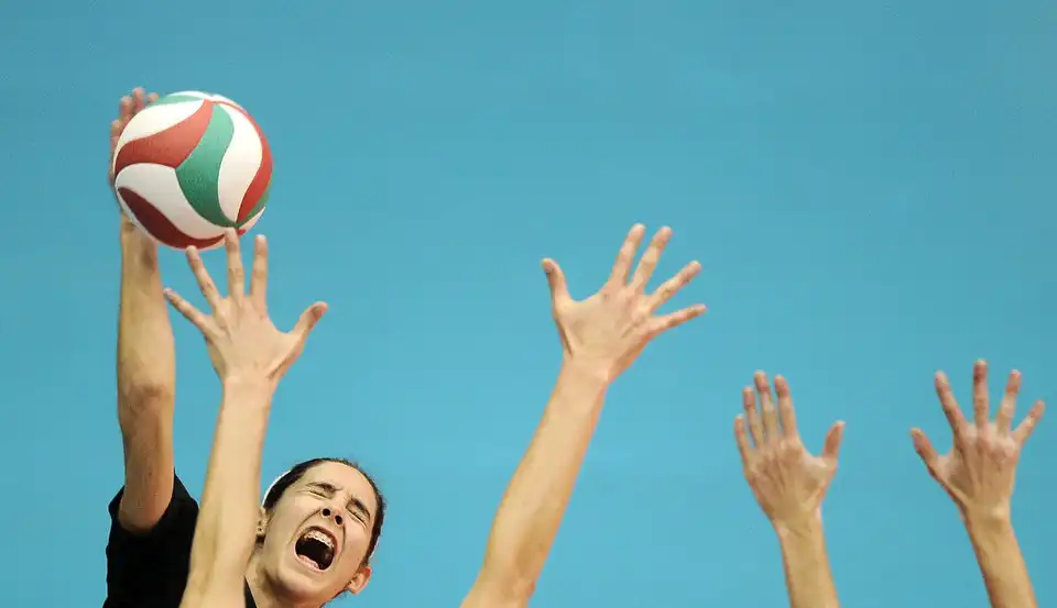 Клодия Риос из Мексики забивает гол сборной США в матче по волейболу среди женщин.